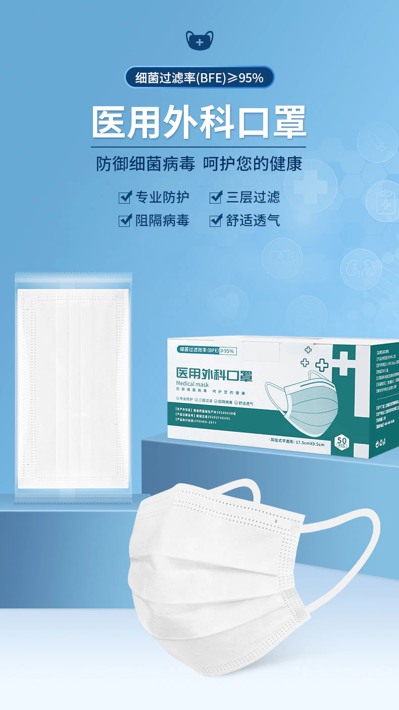 医用外科白色口罩一次性三层抗病毒 数量