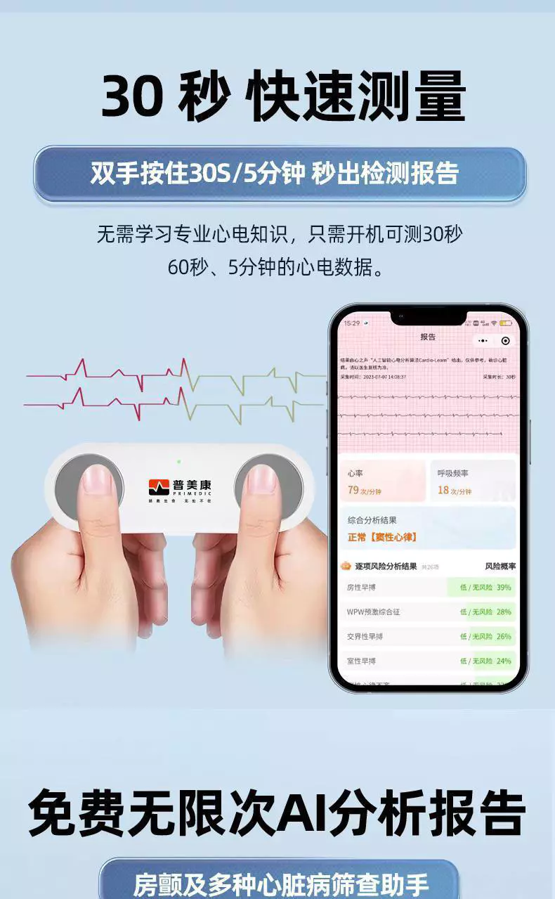 鱼跃普美康心电图机便携式心电仪心脏监测自动分析家用手持监测仪